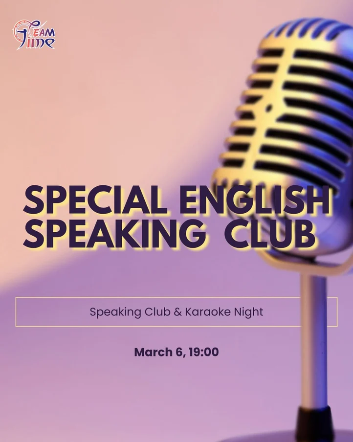 Join us for a special English Club evening ahead of March 8 — where learning meets fun! Practice English through real and engaging conversations Meet new people in a warm and supportive atmosphere Boost your confidence speaking English After our discussion part, we’ll switch the mood and continue the evening with a fun karaoke session — sing, relax, laugh, and enjoy the night together! Duration: 2 hours (includes a 15-minute break with tea, coffee, and sweet snacks ) Come for English. Stay for the vibes.