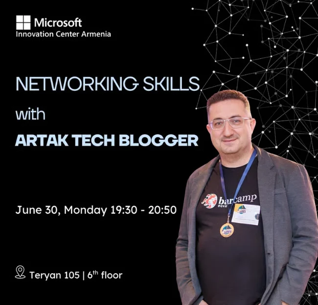 In both professional and everyday environments, we often hear the word “networking.” In many cases, it’s associated with talking to people at events, adding connections on LinkedIn, or simply having a chat with someone after a presentation. But what does it really mean to have networking skills? To explore this question, we decided to organize a meeting with Artak the Tech Blogger. For the past 4 years, Artak has been running a tech blog, working in the field of project management, and is known as someone who actively connects people and ideas. He views networking not just as having connections, but as a process of creating value. On June 30, Artak will share his experience on: ▫️ What networking has given him ▫️ What it means to possess networking skills ▫️ How he applies it in practice and what advice he has for those who want to start or expand their network of connections The event is intended for students, beginners, professionals, and anyone who wants to improve their communication and relationship-building abilities.