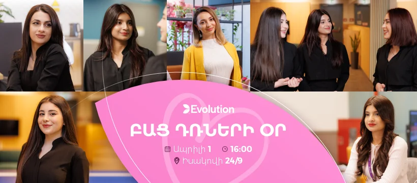 Ապրիլի 1-ին, Evolution-ում տեղի կունենա Բաց Դռների Օր, նվիրված կանանց միամսյակին։ Սա հիանալի հնարավորություն է ծանոթանալու մեր ընկերության հաջողությունների հասած կանանց և աղջիկների պատմություններին և կերտելու հենց ձեր պատմությունը այստեղ։