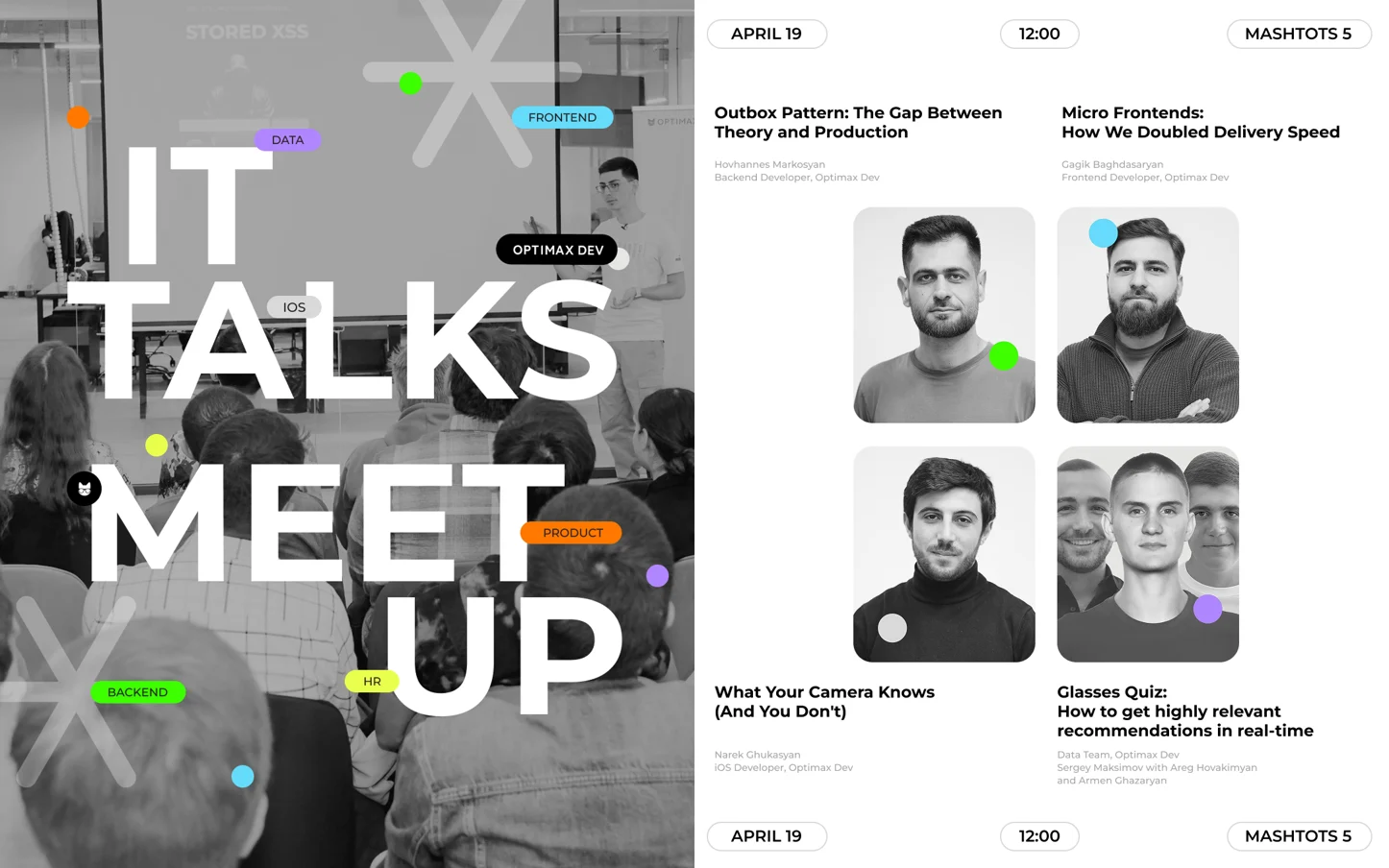 - Վայր՝ Optimax Dev գրասենյակ (Մեսրոպ Մաշտոց 5, Պրոսպեկտ Մոլ, 3-րդ հարկ, Երևան):
