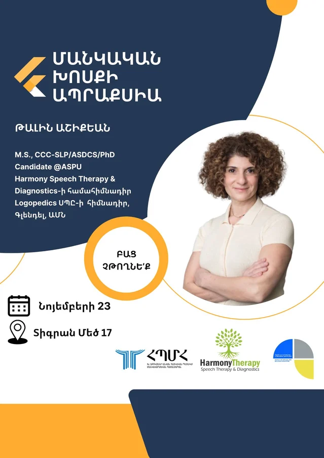 Նոյեմբերի 23-ին ՀՊՄՀ Հատուկ և ներառական կլրթության ֆակուլտետում տեղի կունենա «Մանկական խոսքի ապրաքսիա» խորագրով վերապատրաստման դասընթացը։