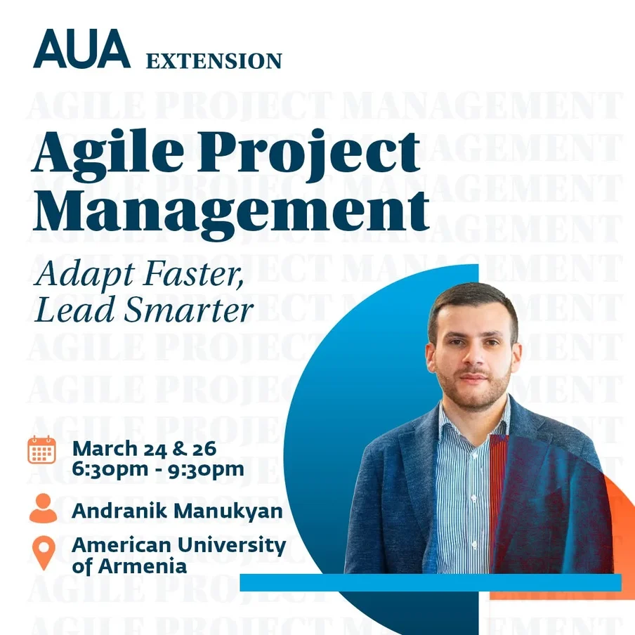 Agile նախագծերի կառավարում Ցանկանու՞մ եք բարելավել ձեր կառավարման հմտությունները և դառնալ ավելի ճկուն առաջնորդ։ Միացեք մեր ինտենսիվ Agile նախագծերի կառավարման դասընթացին և ստացեք գործնական փորձ Agile սկզբունքների, մեթոդների և հնարավոր ռիսկերի կառավարման գործիքների կիրառման մեջ։ Դասընթացի հիմնական թեմաներ Agile մտածելակերպ և աշխատանքային շրջանակներ․ Scrum, Kanban, Lean Agile առաջնորդություն․ ծառայողական և ադապտիվ մոտեցում Աշխատանքային հոսքերի վիզուալիզացում՝ Kanban տախտակներով Գործիքներ․ Trello, Jira Պարտականություններն ու դերերը Agile թիմերում մարտի 24 և 26 18:30 – 21:30 Արդյունքում դուք կկարողանաք․ Կիրառել Agile սկզբունքները տարբեր ոլորտներում նախագծերը արդյունավետ կառավարելու համար Տիրապետել Agile-ի հիմնական սկզբունքներին և շրջանակներին (Scrum, Kanban) Ղեկավարել Agile թիմեր ադապտիվ առաջնորդությամբ և համագործակցային գործիքներով՝ շարունակական զարգացումը խթանելու համար։ Դասավանդման լեզուն` Հայերեն Մասնակցության վճար՝ 9,000 դրամ Վայրը՝ ՀԱՀ, Մարշալ Բաղրամյան 40 Դասախոս՝ Անդրանիկ Մանուկյան, PMP | Նախագծերի կառավարման և ռազմավարության խորհրդատու, միջազգային ծրագրերի ղեկավար