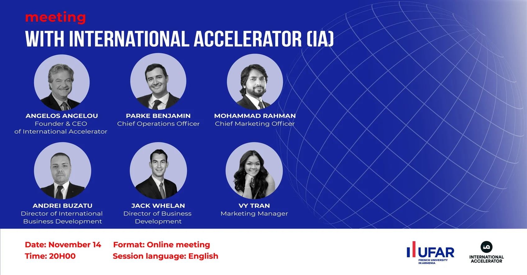 Եթե ունեք ստարտափ գաղափարներ, սա լավ հնարավորություն է այն ներկայացնելու հանդիպման ընթացքում և ստանալու արժեքավոր խորհուրդներ հենց Աքսելերատորի ղեկավար անձնակազմի կողմից։